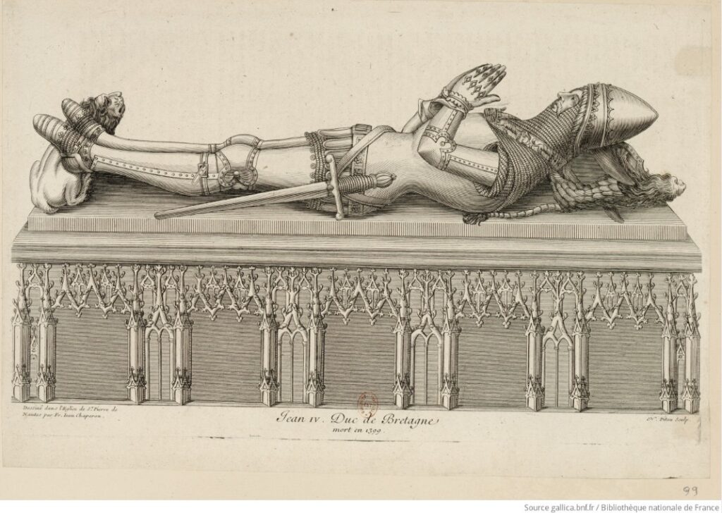 Jean IV s’éteint le 1er novembre 1399. Deux jours plus tard, le 3 novembre, il est inhumé dans la cathédrale de Nantes, nécropole des ducs de Bretagne.